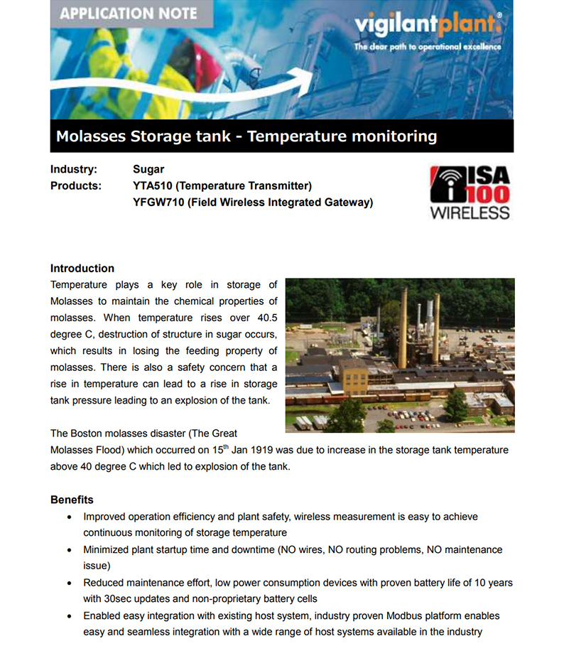 Temperature measument in Molasses tank